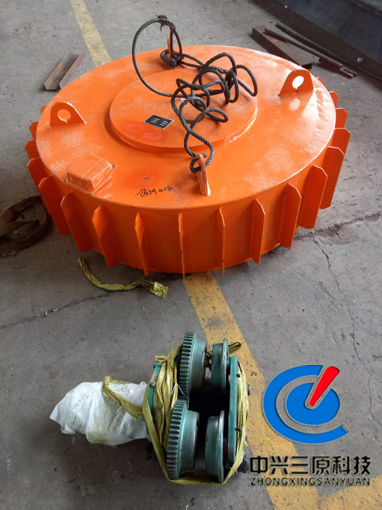 安徽客戶輸煤段配套一臺電磁除鐵器 適應(yīng)皮帶寬度:B=1400mm、 磁場強(qiáng)度:≥70mT 額定吊高:400mm 技術(shù)特點(diǎn): 1、磁路采用計(jì)算機(jī)模擬設(shè)計(jì),透磁深度大,磁力強(qiáng)。 2、內(nèi)部采用電工專用樹脂澆注,自冷式全密封結(jié)構(gòu),防塵,防雨,防腐蝕。 3、可有效吸除混雜再非磁性物料中0.1-50KG的鐵磁性物質(zhì)。